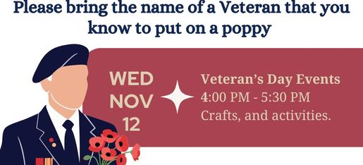 Come to the library to learn more about Veteran's day and what the poppy represents.