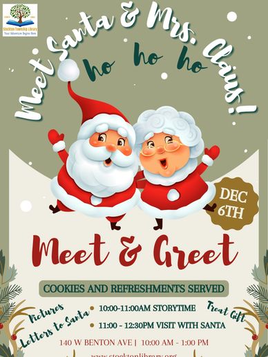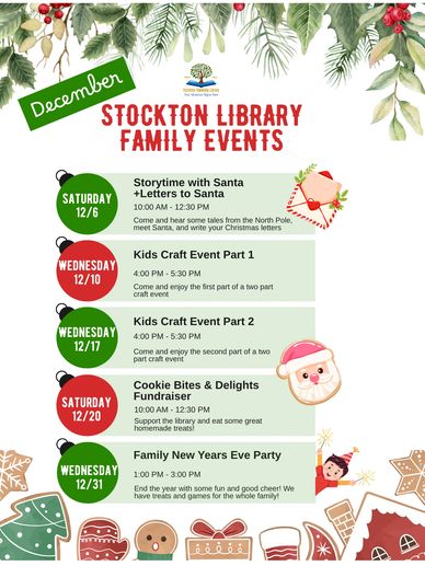 Join us at the Stockton Public Library for a series of festive events on Saturday December 6th!